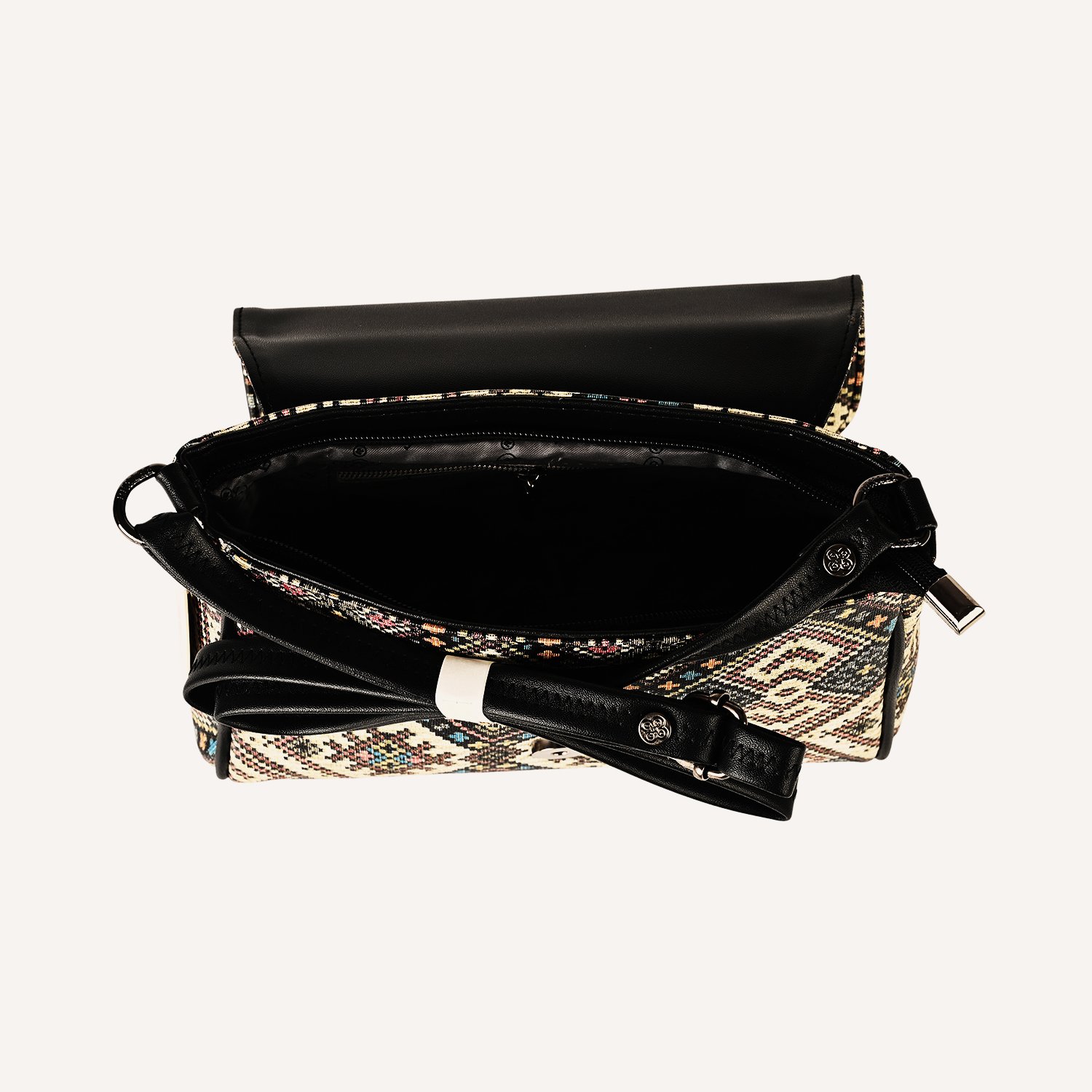 Bexlee Black & Beige Ethnic Pattern Vegan Leather Sling Bag – Stylish, Versatile & Eco-Friendly