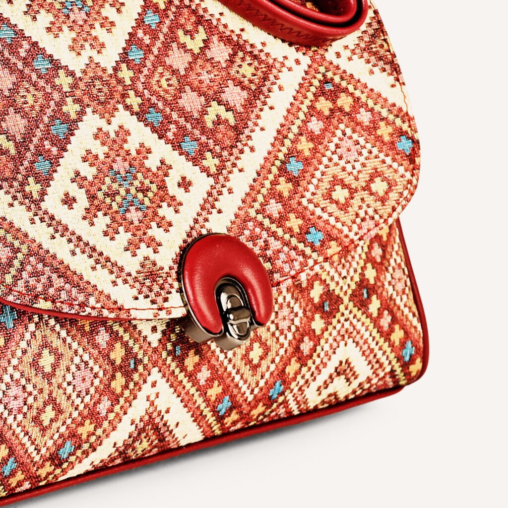 - Make every outfit stand out with this ethnic print vegan leather sling bag – where culture meets contemporary style.