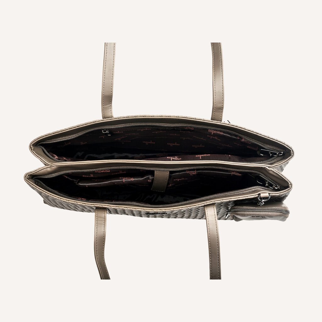 Material: Crafted from premium vegan leather with an artisanal basket weave finish that gives a nod to high-end Bottega Veneta aesthetics — but made consciously and affordably